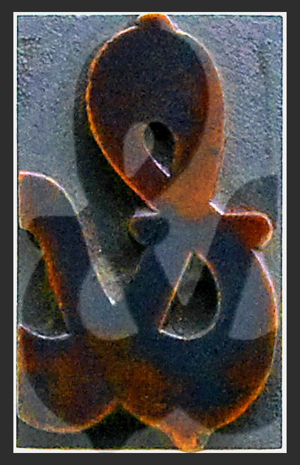 Of all the typographical characters that I encountered in the type drawers, the ampersand was my favourite. I photographed every ampersand wooden type block that I could find; I also printed each one by hand on a table top printer in the letterpress room. The ampersand abstracts in this series were then created in my digital darkroom by combining the original photograph of the wooden type face and a representation of what that character would look like when printed using black ink.