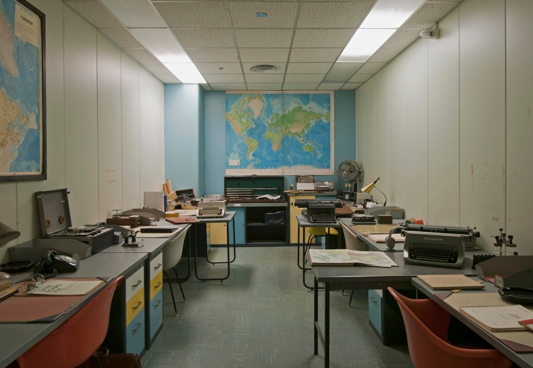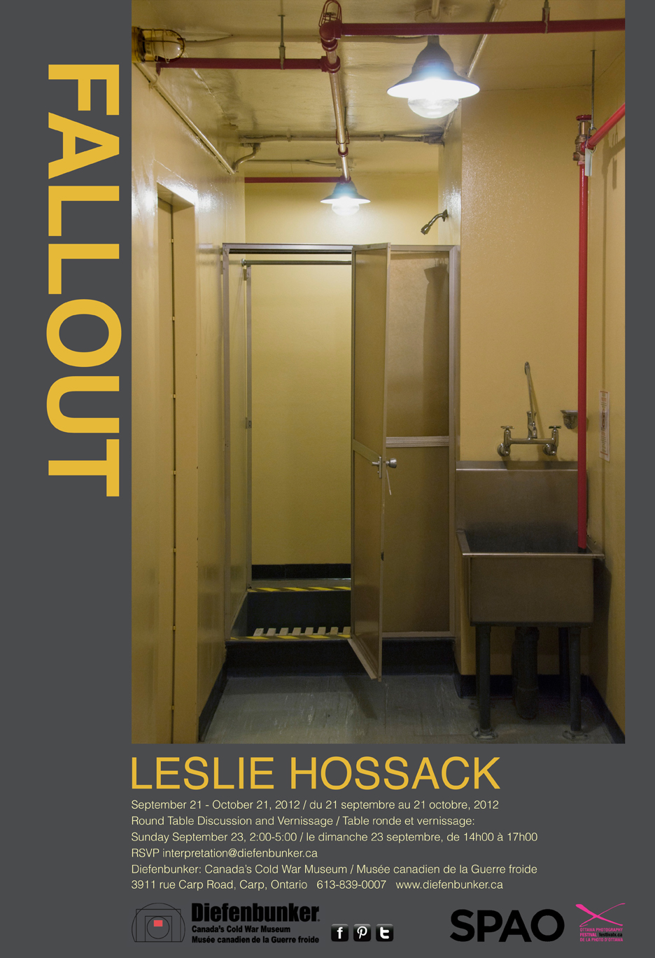In Berlin today, little evidence of the wall remains. This 200-metre section runs along the south side of Niederkirchner Strasse. Leslie Hossack’s photographic installation entitled The Wall, Niederkirchner Strasse meassures over 18 feet long. It is on view at the 25 BERLIN exhibit at The Diefenbunker: Canada’s Cold War Museum until March 31st, 2015.