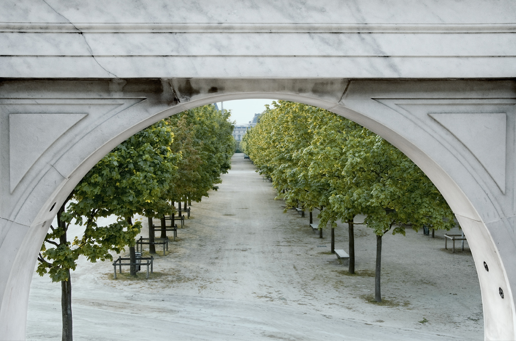 Before departing for Paris, I studied old photographs of the city. During the last 100 years, the Tuileries Gardens have been photographed by many well-known photographers, including: Eugène Atget (Jardin des Tuileries, 1907); André Kertész (Jardin des Tuileries, 1928-1930); Brassaï (Banc aux Tuileries, 1930-1932); Robert Doisneau (Amour et Barbelés, Tuileries, 1944); and Henri Cartier-Bresson (Jardin des Tuileries, 1974). When I arrived in Paris in April 2009, it was a challenge to reconcile these representations from the past with today’s reality. As a solution, I have tried to combine a formal approach to composition with a softer modern palette to produce these timeless images of Paris.