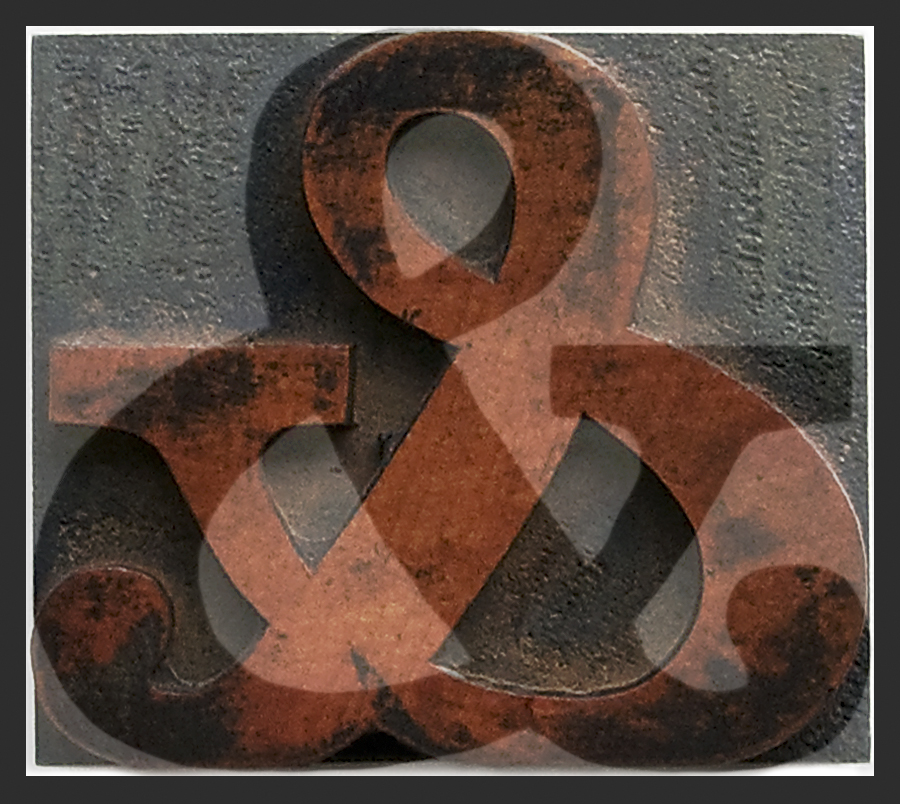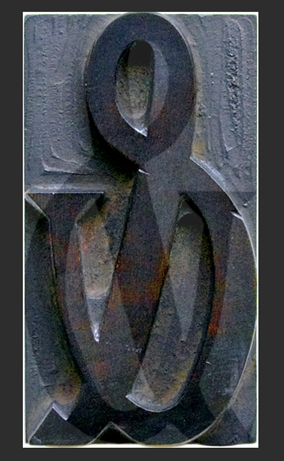 Of all the typographical characters that I encountered in the type drawers, the ampersand was my favourite. I photographed every ampersand wooden type block that I could find; I also printed each one by hand on a table top printer in the letterpress room. The ampersand abstracts in this series were then created in my digital darkroom by combining the original photograph of the wooden type face and a representation of what that character would look like when printed.